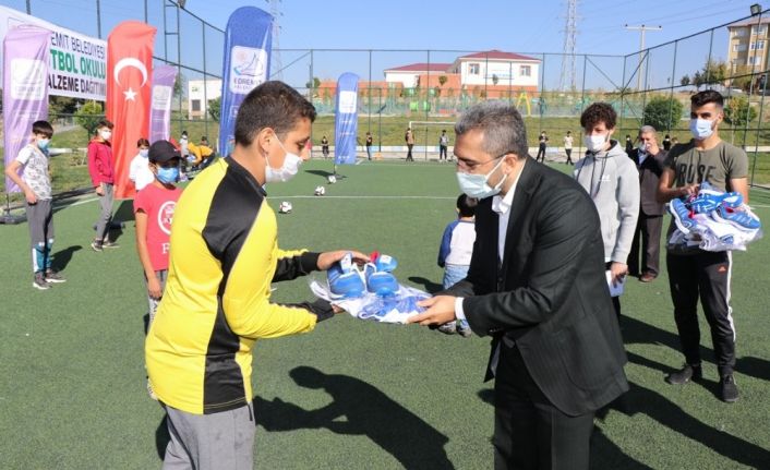 Van’ın merkez Edremit Belediye Başkanı İsmail Say, ‘Amatör Spor Haftası’ etkinlikleri kapsamında belediye bünyesinde bulunan ‘Futbol Okulu’ öğrencilerine ayakkabı ve eşofman takımının bulunduğu spor malzemesi dağıttı.
