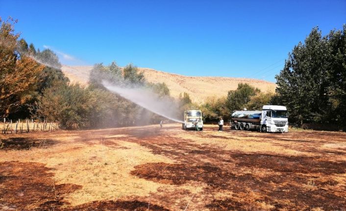 Van’ın Edremit ilçesine bağlı Çayırbaşı Mahallesi’nde 45 dönümlük arazide kendiliğinden yanan toprağa Edremit Belediyesi ekipleri müdahale ederek alevleri kontrol altına aldı.