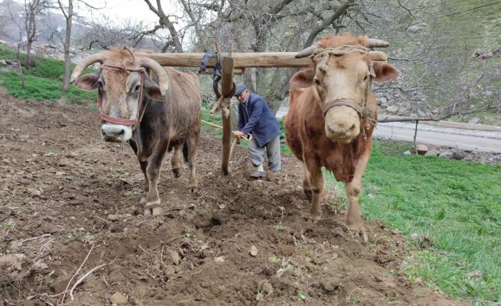 Van’ın karıyla meşhur Bahçesaray ilçesinde, traktörlerin giremediği dik yamaçlardaki tarlalar halen karasaban ve öküzlerle sürülüyor.