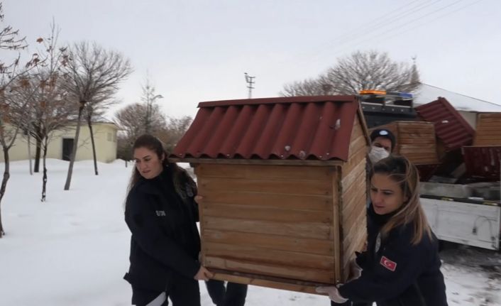 Van’ın Erciş Belediyesi, soğuk havalarda sokak hayvanlarının barınabilmesi ve yaşamlarını sürdürebilmesi için şehrin belli noktalarına kulübe bıraktı.