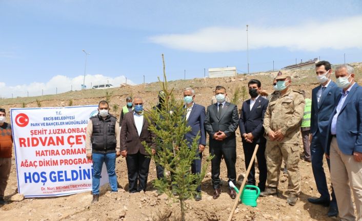 Van’ın Erciş ilçesinde Şehit Jandarma Uzman Onbaşı Rıdvan Çevik Hatıra Ormanına 375 adet fidan dikildi.