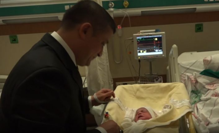 Hastane personelinin yeni yılını kutlayan Kaymakam Mehmetbeyoğlu da, gün içinde doğan bebeklerin ailelerine hediye takdim ederken 00.00 doğan Alin Hüma’ya ise çeyrek taktı.