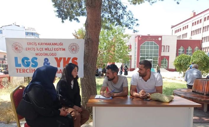 Erciş Milli Eğitim Müdürlüğü ve Erciş Rehberlik Araştırma Merkezi işbirliği ile kaymakamlık bahçesinde kurulan stantta, alanında uzman öğretmenlerle öğrencilere YKS tercih danışmanlık hizmeti veriliyor. Hizmetten memnun kalan öğrenci ve veliler, tercih yapacakları okullar hakkında bilgi aldıktan sonra buradan ayrılıyor.