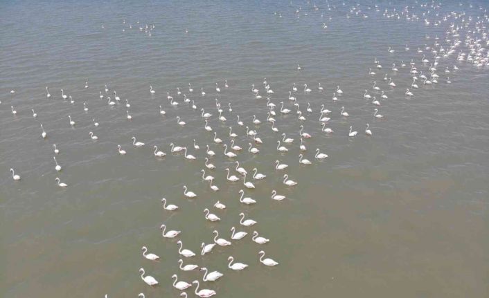 Göçmen kuşların Kuzey Afrika’dan İran’a uzanan yolculuğunda en önemli konaklama merkezlerinden olan Van Gölü havzası, çok sayıda türden binlerce kuşa ev sahipliği yapıyor. Havzanın en önemli sulak alanlarından Erciş Çelebibağı ve Erçek sulak alanlarında ilkbahardan bu yana konaklayan flamingolar, gölde kartpostallık görüntüler oluşturuyor. Göç yolculuğu ekim ayından itibaren başlayan flamingolar havadan drone ile görüntülendi. Binlerce flamingoya her yıl ev sahipliği yapan Özalp ilçesindeki Akgöl ile Saray ilçesindeki Tuz Gölü’nün tamamen kuruması, havzadaki sulak alanlardaki seviyenin düşmesi ve Van Gölü