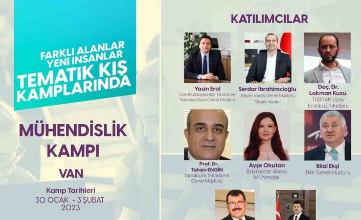 Bu çerçevede farklı şehirlerdeki üniversitelerde öğrenimlerini sürdüren gönül coğrafyamızın değişik bölgelerinden gelecek öğrencilerin katılımıyla Van Gençlik ve Spor İl Müdürlüğünün ev sahipliğini yapacağı Mühendislik Kampı temalı kış kampı, Aişe Sıddıka Öğrenci Yurdunda gerçekleşecek. Birbirinden değerli konuşmacıların katılacağı kamp 5 gün sürecek. Kamp açılışı ise 30 Ocak Pazartesi günü saat 10.00da Van Valisi ve Büyükşehir Belediye Başkan Vekili Ozan Balcı ve protokolün katılımıyla yapılacağı bildirildi.