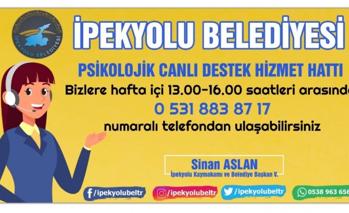 İpekyolu Belediyesi, Kadın ve Aile Hizmetleri Müdürlüğü vatandaşların toplum ve aile içerisinde yaşamış oldukları olumsuzlukların aile ve çocuklar üzerindeki etkilerini bireysel ve toplumsal anlamda daha iyi yönetilebilmesi için destek vermek adına psikolojik destek hizmeti vermeye başlayacak. Kurmuş olduğu Kadın Danışma Merkezi’nde verilen psikolojik destek hizmetlerine tüm dünyada vuku bulan Korona virüs nedeniyle telefonda canlı destek yoluyla vermeye devam edecek. Hafta içi her gün 13.00-16.00 saatleri arasında canlı destek yoluyla hizmet verecek psikologlar, vatandaşların psikolojik sorun ve sıkıntılarına çözüm bulmak adına 0531 883 87 17 nolu telefonun öteki ucunda vatandaşların aramalarını bekliyor olacakları bildirdiler.