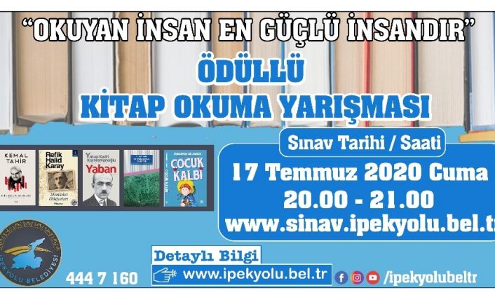 İpekyolu Belediyesi Kültür ve Sosyal İşleri Müdürlüğü, dünyanın ve Türkiye’nin mücadele ettiği korona virüs nedeniyle evlerinden çıkamayan vatandaşlara yönelik "Okuyan insan en güçlü insandır" sloganı ile hayat geçirdiği kitap okuma yarışması için katılım 25 Haziran 2020 Perşembe günü sona ermişti. Katılımların ücretsiz olduğu, yaş sınırlamasının bulunmadığı yarışma, www.sinav.ipekyolu.bel.tr sitesi üzerinden 17 Temmuz 2020 Cuma günü 20.00 - 21.00 saatleri arasında online olarak yapılacak. Cevap anahtarı da www.ipekyolu.bel.tr web sitesi üzerinden 24 Temmuz 2020 Cuma günü yayınlanacak.