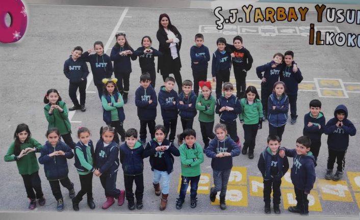 Van’da Şehit Jandarma Yarbay Yusuf Turgut İlkokulu öğrencileri, işitme engelli arkadaşlarına yönelik işaretlerle 23 Nisan klibi çektiler.
