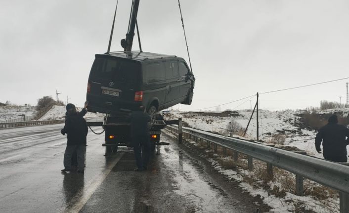 VAN (İHA) – Van’ın Erciş ilçesinde olumsuz hava şartları nedeniyle kayan araç, bariyerlere rağmen yoldan çıktı.