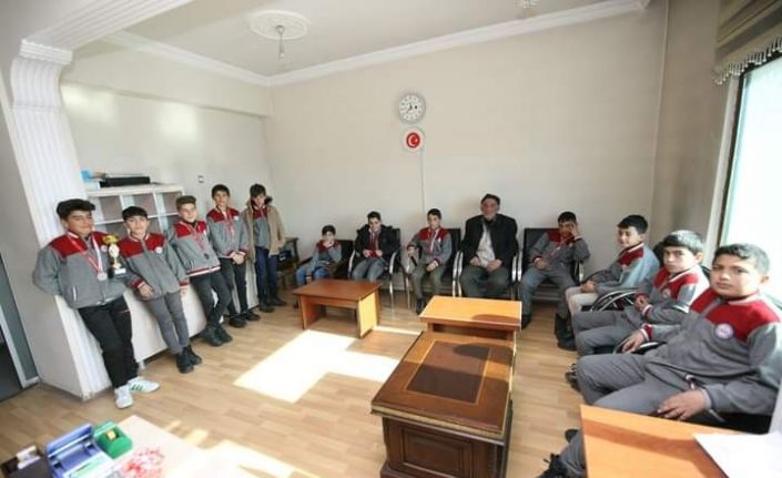 Van’ın Özalp Kaymakamı M. Emin Nasır, okullar arasında düzenlenen futbol turnuvasında il üçüncüsü olan Özalp Yatılı Bölge Ortaokulu öğrencilerini kabul etti.