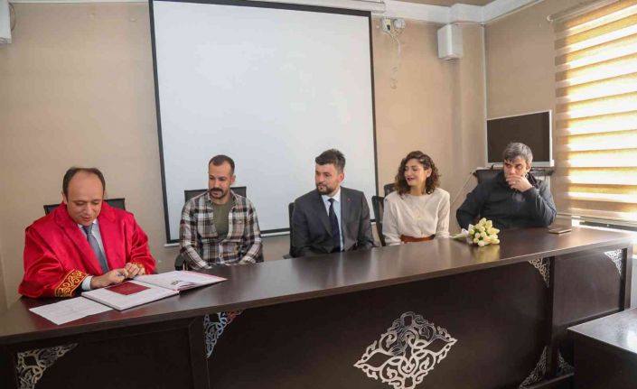VAN (İHA) – Van’ın Başkale Kaymakamı ve Belediye Başkan Vekili Asım Solak, polis memuru Çağrı Tüysüz ile bankacı Duygu Uğur çiftinin nikâhını kıydı.
