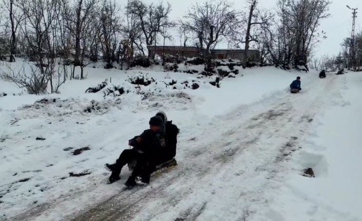 Gevaş’ta dün geceden beri etkili olan kar yağışı hayatı olumsuz etkilerken, ilçeye bağlı Elmalı Mahallesi’nde bir araya gelen çocuklar ise kendi imkanlarıyla yaptıkları kızaklarla kaymanın keyfini yaşadı. Soğuğa aldırış etmeden kaymanın keyfini süren çocuklar, Artos Dağı eteklerinden başlayarak evlerinin önüne kadar kayıyor. Yaşları 8 ile 16 arasında değişen çocuklar, sömestr tatili olması nedeniyle zamanlarını kızakla kayarak geçirdiklerini dile getirdiler. Kızak keyfini yaşayan çocuklar, "Arkadaşlarla keyifli bir gün yaşıyoruz" ifadelerini kullandılar.