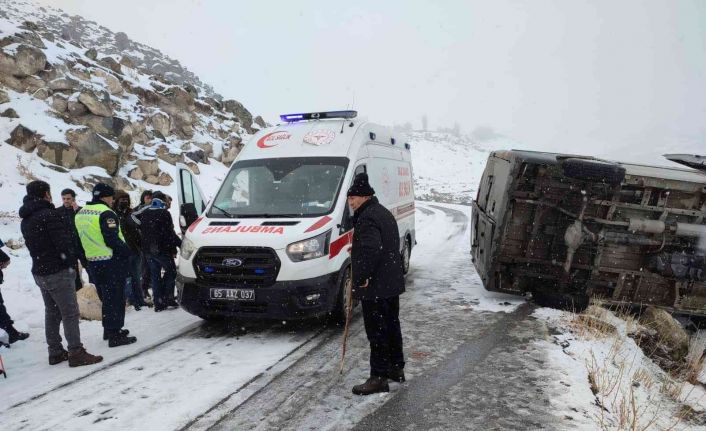 Van’ın Çaldıran ilçesinde kontrolden çıkan minibüsün yan yatması sonucu 2 kişi yaralandı.