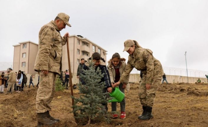 Van’ın Özalp ilçesinde ‘11 Kasım Milli Ağaçlandırma Günü’ çerçevesinde İlçe Jandarma Komutanlığı bahçesinde 300 fidan toprakla buluşturuldu.