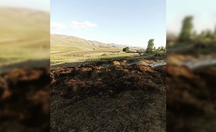Van’ın Muradiye ilçesinde kışın hayvanlara verilmek üzere istiflenen ot yığını alev alev yandı.