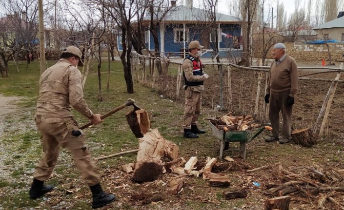 Van’da korona virüs tedbirleri kapsamında 65 yaş üstü ve kronik rahatsızlığı bulunanlar için oluşturulan "Vefa Sosyal Destek Grubu” çalışmalarında görevli jandarma ekipleri, bu kez 73 yaşındaki Çerkez Tarhan için odun kırdı.