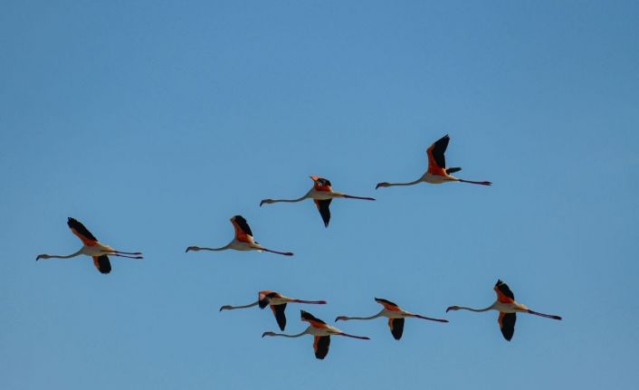 Her yıl belirli dönemlerde Van Gölü ve Erçek Gölü havzalarında konaklayan flamingoların bu yılki görsel şöleni erken başladı. Kış mevsimini Hazar ve Urumiye gölleri kıyılarında geçirdikten sonra havaların ısınmasıyla her yıl Van Gölü havzasındaki sulak alanları mesken tutan binlerce flamingo, kent merkezine 30 kilometre uzaklıktaki en önemli yaşam alanlarından biri olan ve sayısız kuş türüne ev sahipliği yapan Erçek Gölü’ne geldi. İran’ın Urmiye Gölü ile Afrika arasında göç ederek Van’a gelen flamingolar, Afrika ile İran arasında yaptıkları göç sırasında geçiş güzergahında bulunan Van Gölü Havzası’ndaki başta Erçek Gölü olmak üzere 12 sulak alanda yaklaşık 5 ay konaklıyor. Van Gölü ve çevresindeki sulak alanlarda meraklılarına görsel şölen de sunan flamingoların bu yılki ilk grubu Erçek Gölü kıyılarına geldi.