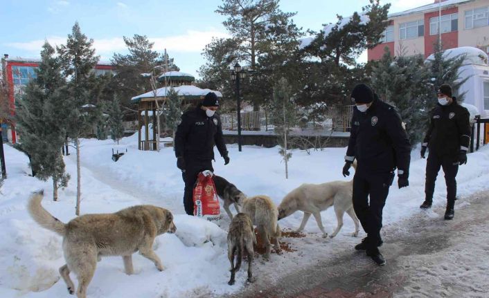 İlçe Emniyet Müdürlüğü ekipleri, sorumluluk bölgelerinde kar yağışı ve havaların soğumasıyla beraber yiyecek bulmakta güçlük çeken sokak hayvanları için düzenli olarak mama dağıtımı yapıyor.