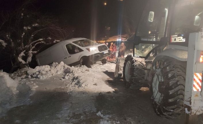 Ekipler, ayrıca Kaşıkçılar Mahallesi yolunda mahsur kalan bir minibüsü de yarım saatlik bir çalışmayla kurtardı.