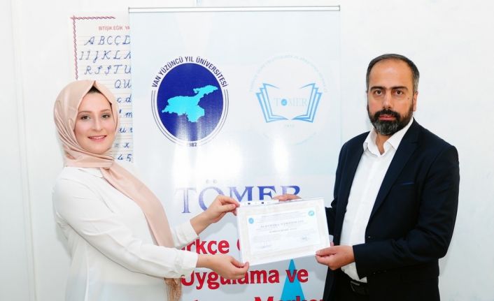 Van Yüzüncü Yıl Üniversitesinde (YYÜ) yabancı uyruklu öğrencilere Türkçe öğretmek için düzenlenen "Uzman Eğitici" kursunu başarıyla tamamlayan Türk Dili ve Edebiyatı ile Türkçe Öğretmenliği mezunlarına sertifikaları Rektör Prof. Dr. Hamdullah Şevli tarafından verildi.