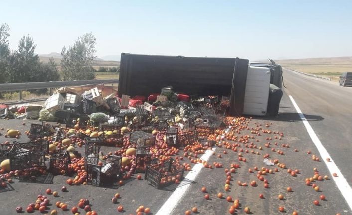 Van’ın İpekyolu ilçesinde sebze meyve yüklü kamyon devrildi.
