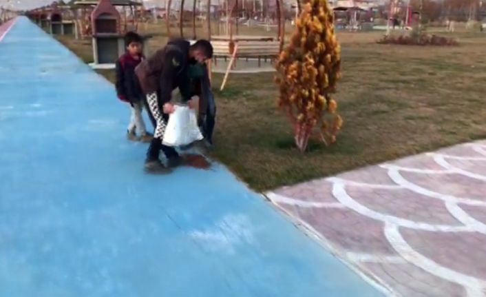 Tuşba ilçesine bağlı İskele Mahallesi’nde bir grup arkadaş, sokak hayvanları için petshopta mama aldı. Daha sonda 15 Temmuz Şehitler Parkına gelen çocuklar, torbadaki mamaları farklı alanlara bırakmaya başladı. O anları ise bir vatandaş cep telefonu kamerasıyla kaydetti.