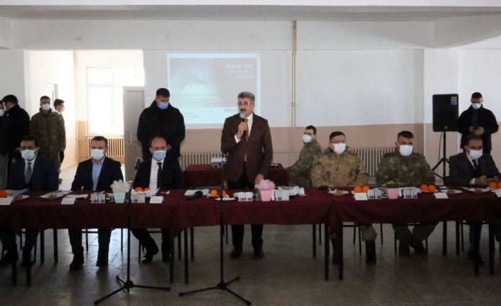 Toplantıda bir konuşma yapan Vali ve Büyükşehir Belediye Başkan Vekili Mehmet Emin Bilmez, yaşanan depremde hayatını kaybedenlere Allah’tan rahmet dileyerek, depremin ilk anından itibaren devletin tüm birimleri ile depremzedelerin yanında olduğunu hatırlattı. Vali Bilmez, "Maalesef deprem bölgesinde yaşıyoruz. Fakat Allah’a şükür ki bu tür doğal afetlere karşı eskisinden daha güçlüyüz. Depremin ilk anında Cumhurbaşkanımız bizleri arayarak bilgi aldı. İlk saatlerde henüz daha şok atlatılmadan İçişleri Bakanımız Süleyman Soylu ve birçok bakanımız bölgeye geldi. Depremzedelerin ilk etapta olan beslenme ve barınma gibi temel ihtiyaçlarını gidermek adına çalışma başlattık. Daha sonra ise çadırlar, konteynerler ve son olarak prefabrik evler ile yaraları sarmaya çalıştık. Vatandaşlarımızın barınma ihtiyacının yanında, bölgede yaygın olan hayvancılık faaliyetleri nedeniyle Türkiye’de bir ilke imza atarak çadır ahırlar kurduk. Kimsenin mağdur olmaması adına devletimiz tüm imkanlarını bölgeye seferber etti. Bizlerde bugün hem depremin yıldönümünde sizlerin yanında olmak, hem de sorunlarınızı hem taleplerinizi almak üzere buradayız" dedi.