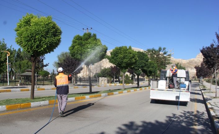 Van Büyükşehir Belediyesi; park, bahçe, orta refüj ve kaldırımlarda bulunan ağaçları zararlı böceklere karşı ilaçlıyor.