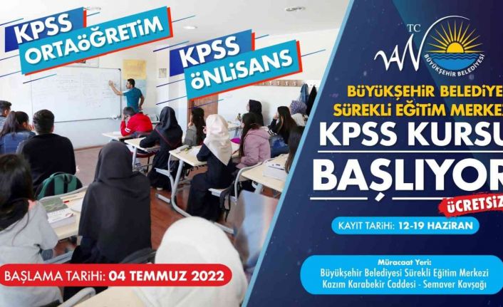 Van Büyükşehir Belediyesi Kamu Personel Seçme Sınavına (KPSS) girecekler için açtığı ücretsiz kurs kayıtları 19 Haziran 2022 Pazar gününe kadar yapılabilecek.