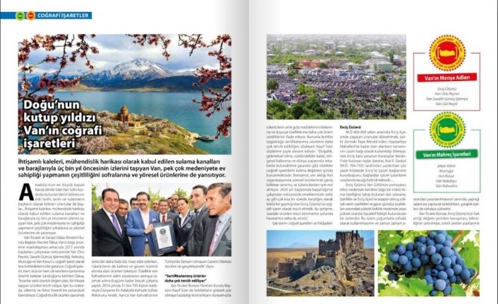 “İhtişamlı kaleleri, mühendislik harikası olarak kabul edilen sulama kanalları ve barajlarıyla üç bin yıl öncesinin izlerini taşıyan Van, pek çok medeniyete ev sahipliği yapmanın çeşitliliğini sofralarına ve yöresel ürünlerine yansıtıyor” ifadeleri ile başlayan yazıda, Van TSO Başkanı Necdet Takva’nın coğrafi işaretli ürünlerle ilgili açıklamalarına da yer verildi.
