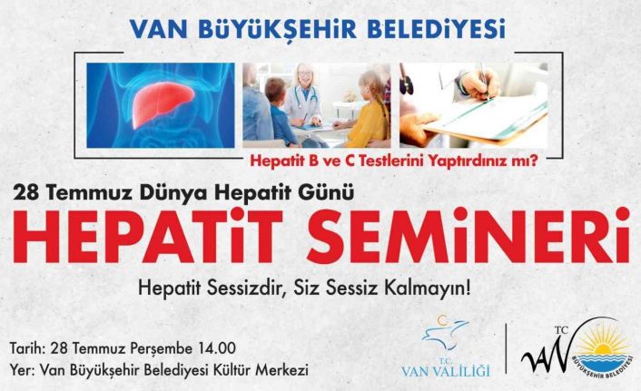 Van Büyükşehir Belediyesi öncülüğünde Van Valiliği ve İl Sağlık Müdürlüğü işbirliğiyle 28 Temmuz Dünya Hepatit Gününde eğitim semineri düzenlenecek. Sağlık İşleri Dairesi Başkanlığı organizasyonunda düzenlenecek olan seminerde viral hepatit bulaşının önlenmesi, hepatit hastaların tedaviye yönlendirilmesi ve vatandaşları karaciğer sirozu ve kan kanserinden korumak gibi konular anlatılacak.