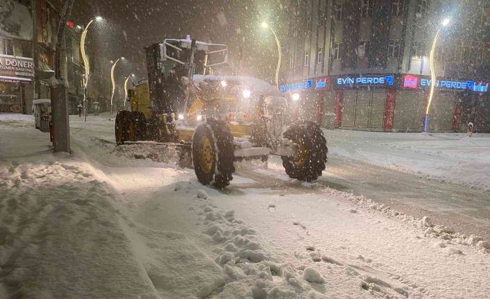Van’da dünden bu yana aralıklarla etkili olan kar yağışı nedeniyle Van Büyükşehir Belediyesi ekipleri, gece boyu çalışmalarını sürdürdü.