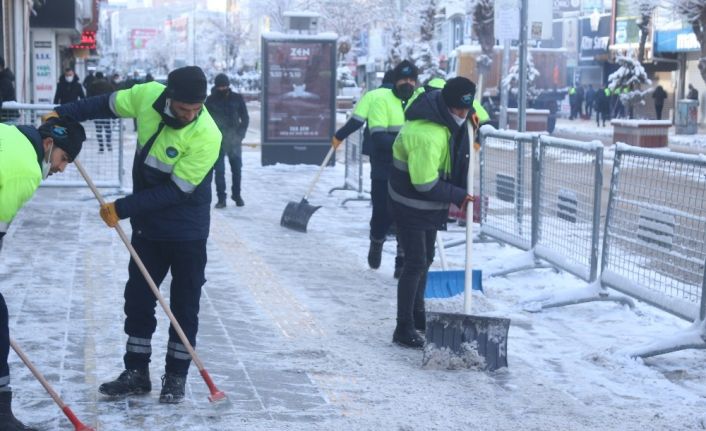 Van Büyükşehir Belediyesi gece saatlerinde kentte etkili olan kar yağışının ardından çalışma başlattı.