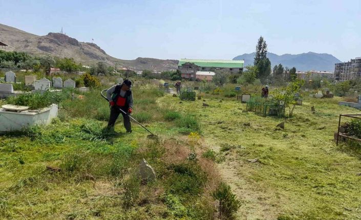 Van Büyükşehir Belediyesi, kent genelindeki mezarlıklarda yabani ot temizliği çalışması başlattı.