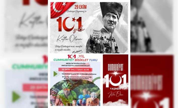 Van Öğretmenler Bisiklet Topluluğu, 29 Ekim Cumhuriyet Bayramı kutlamaları çerçevesinde 29 Ekim Salı günü Türkiye Cumhuriyeti’nin 101’inci yılı münasebetiyle ‘Cumhuriyetimizin 101. Yılında 101 Pedal’ etkinliği düzenliyor.