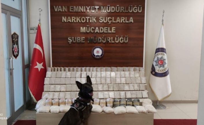 Van’ın merkez İpekyolu ilçesinde polis ekipleri tarafından bir kamyonete narkotik köpeği Rexo ile birlikte yapılan aramada 50 kilo 895 gram eroin ile 27 kilo 380 gram metamfetamin ele geçirildi.