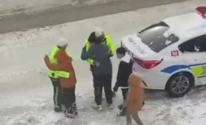 Van’da kar yağışıyla kent beyaza bürünürken, soğuk havaya rağmen yürekleri ısıtan anlar yaşandı. Görev başındaki trafik polisleri, karın tadını çıkaran çocuklara eşlik ederek onlarla kartopu oynadı.