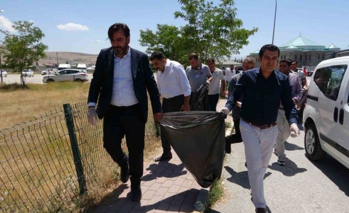 Van Eğitim ve Araştırma Hastanesinde yönetimi, ellerine aldıkları çöp poşetleriyle hastane yerleşkesinde çevre temizliği yaptı.