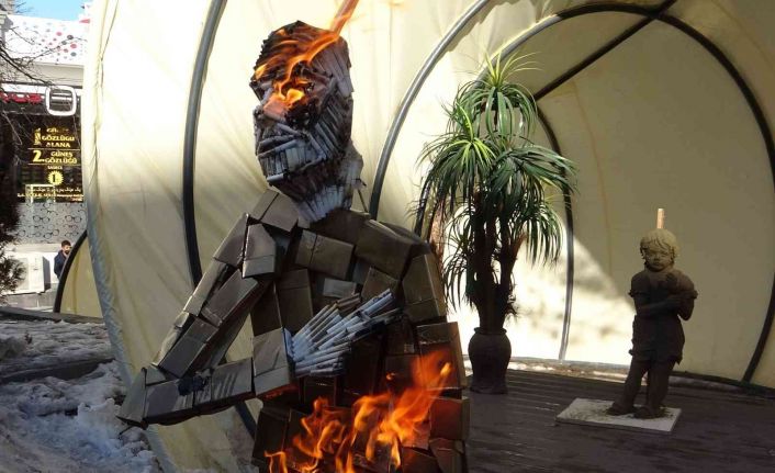 Heykeltıraş İhsan Bal ise hem gençleri hem de vatandaşları sigara bırakmaya teşvik etmek için böyle bir proje geliştirdiklerini aktararak, “Sigaradan bir yetişkin birey heykeli yaptım. Bu heykel, dünya küresi içinde yandıkça etrafındaki ekosistemi tahrip ediyor. Bu noktada denizler kirleniyor ve doğadaki çöplerin yüzde 70’i sigara izmaritlerinden oluşuyor. Ayrıca sigara içmeyenler de pasif içici olarak etkileniyorlar” dedi.