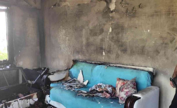 Yangın nedeniyle evde maddi hasar oluştu. Olayla ilgili tahkikatı sürüyor.