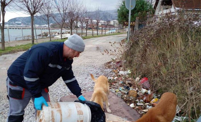 Çınarcık Belediyesi Veterinerlik Hizmetleri Servisi ekipleri, karlı havalarda sokak hayvanlarını yalnız bırakmıyor.