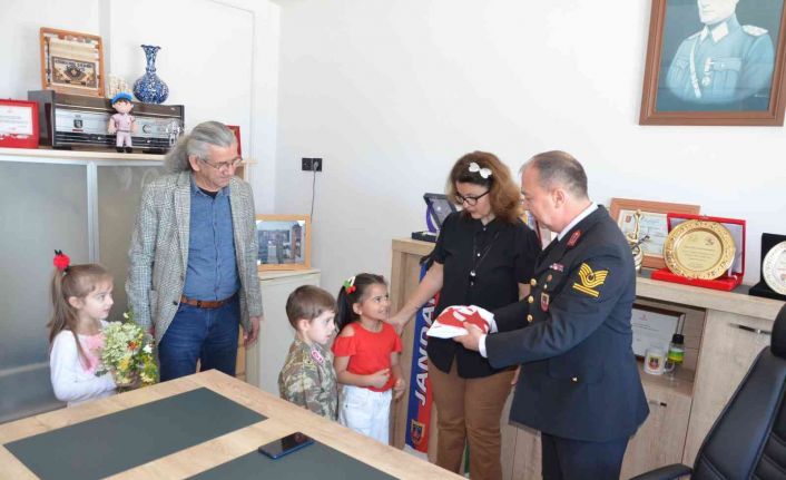 Yalova’nın Çınarcık ilçesine bağlı Esenköy beldesinde anaokulu öğrencilerine vatan, millet ve bayrak sevgisi kazandırılması için düzenlenen etkinlikte minikler jandarma komutanına Türk bayrağı hediye etti.