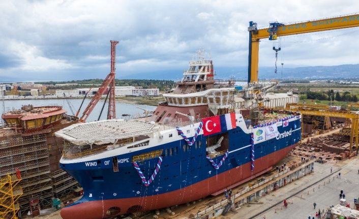 Yalova Altınova Tersaneler Bölgesinde bulunan özel bir tersane Fransız Louis Dreyfus Armateurs firması için inşa ettiği Wind of Hope adlı rüzgar türbini destek gemisini denize indirdi.