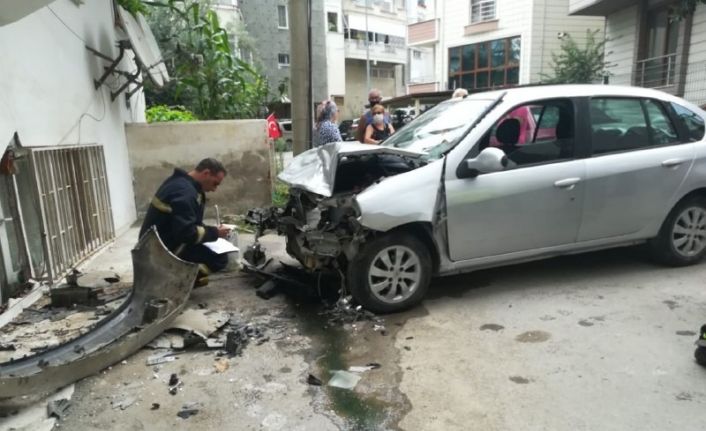 Edinilen bilgiye göre, Cevat T. (68), 77 EK 428 plakalı otomobili ile bir yakınına gitmek üzere evinden çıktı. Hareket halindeyken aracını durdurmak için frene basmak isteyen şahıs, yanlışlıkla gaza basınca olanlar oldu. Fırlayan araç, bir dairenin duvarına çarparak durdu. Dairenin duvarı kısmen yıkılırken, araçta ise ağır hasar meydana geldi. Cevat T. kazayı yara almadan atlatırken, duvarı yıkılan dairenin boş olması faciayı önledi. Kazayla alakalı tahkikat sürüyor.