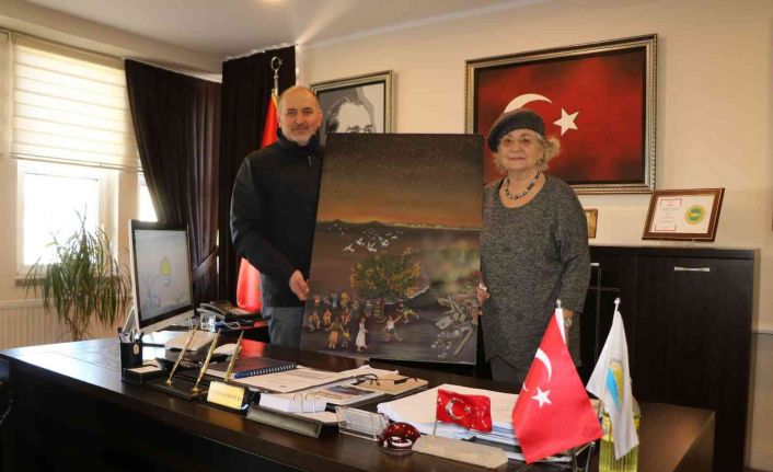 Marmara depremini anlatan tablosunu Soyer’e hediye etti