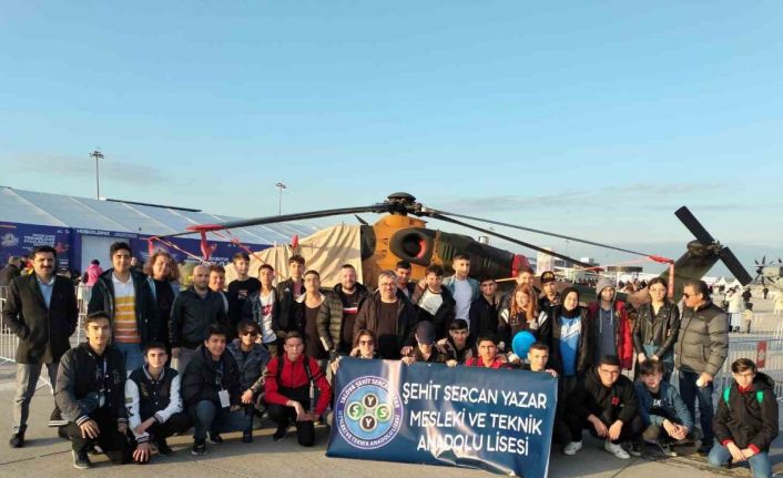 Şehit Sercan Yazar Mesleki Teknik Anadolu Lisesi öğrencileri ve proje öğretmenleri Yalova Makine İhtisas OSB koordinasyonunda TEKNOFEST’e katıldı. İstanbul Atatürk Havalimanı’nda düzenlenen etkinlikte Teknofest projeleri arasında yarışan okul takımını yalnız bırakmayan öğrenciler gezi çerçevesinde proje stantlarını, yarışmaları ve diğer etkinlik alanlarını ziyaret ederek yapılan çalışmaları yerinde inceledi.