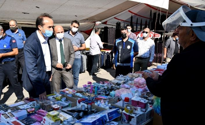 İçişleri Bakanlığı’nın genelgesi çerçevesinde Yalova’nın Altınova ilçesinde kurulan semt pazarında COVID-19 denetimleri gerçekleştirildi.