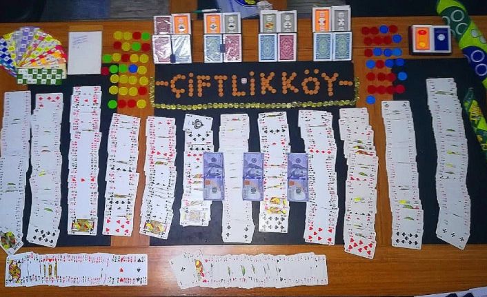Yalova Emniyet Müdürlüğü bir adreste kumar oynatıldığı ihbarı üzerine harekete geçti. Çiftlikköy ilçesinde belirlenen adrese baskın düzenleyen ekipler aynı yerde kumar oynayan ve kumara aracılık eden S.A, D.K, N.Y., S.K., O.O., T.K., K.B., Y.I., B.Y., S.A., A.H., M.E., H.Y. Ö. D. ve Ö. Y. İsimli şahısları suçüstü yakaladı. Adreste; 29 adet deste halinde toplamda 1.508 İskambil Kağıdı, 55 adet kumar da marka olarak kullanılan oyun pulu, Bir deste üzerinde oynayanların ismi ve oyun puanı yazılı yazboz kağıdı, 24 adet tombala kağıdı, 90 adet tombala pulu, 2 adet üzerinde rakamlar yazılan oyun bezi, 49 adet para veya marka olarak kullanılan oyun pulu ve 3 adet koltuk altında bulunan 100 dolar da ele geçirildi.