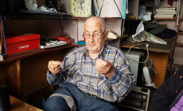Devrek’te yaşayan 90 yaşındaki Ahmet Esen, terzilik mesleğini sürdürmeye çalışıyor.