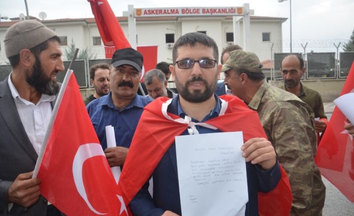 Gençler adına basın açıklaması yapan Fırat Soylu, "Bugün askerlik şubesinin önüne geldik. Türkiye’nin sınır güvenliğini sağlamak ve terör koridorunu temizlemek için terör örgütü PKK, YPG, PYD’ye yönelik başlatılan Barış Pınarı Harekatı’na katılmak için geldik. Devletimizin ve askerimizin yanındayız. Her Türk asker doğar. Devletimizin başlatmış olduğu Barış Pınarı Harekatı’na destek olmak için gönüllü olarak askere gitmek istiyorum" dedi.